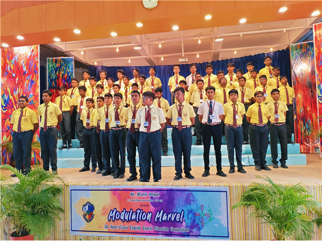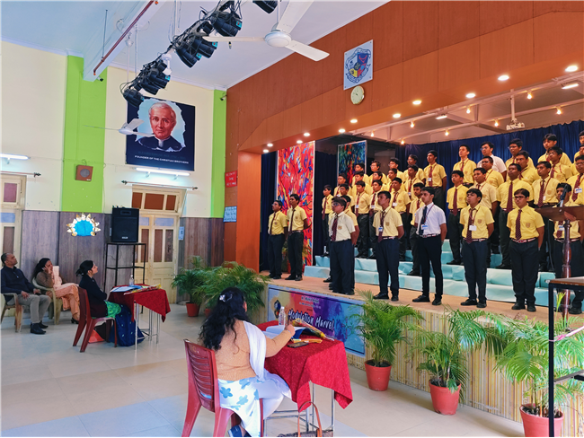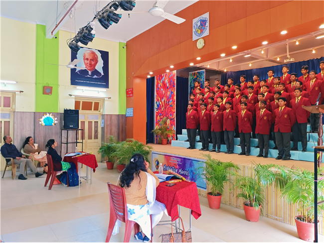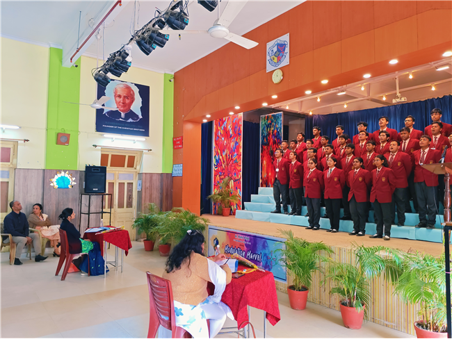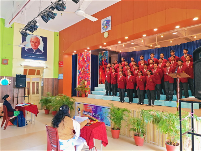 The Inter-Class English Choral Elocution Competition was held on 12th December 2025 with great enthusiasm and spirited participation. Students of Classes 6 and 7 competed in one category, while Classes 8, 9, and 11 took part in a separate group, each presenting well-coordinated and expressive choral recitations. The event showcased the students’ clarity of speech, voice modulation, teamwork, and interpretative skills.